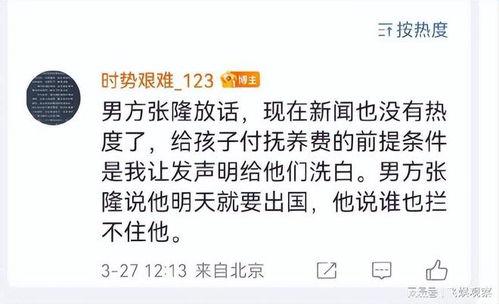 最近,有网友在微博上爆料称,张隆在拍摄一部新剧期间,与剧中女演员发生了不正当关系。这个消息一出,立刻引起了网友们的热议。有人质疑张隆的人品,也有人表示这只是娱乐圈的炒作。那么,这个消息是真是假呢?